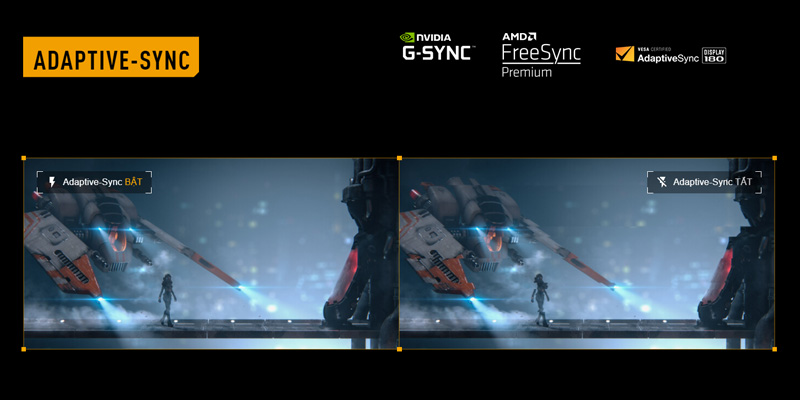 AMD FreeSync Premium, tương thích với NVIDIA G-Sync và công nghệ VESA AdaptiveSync đảm bảo hình ảnh siêu mượt, không bị xé hình với độ trễ thấp