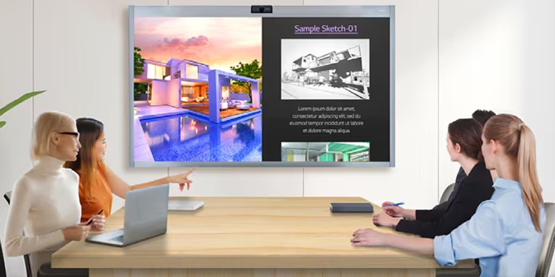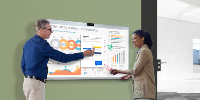 Màn hình cảm ứng 4K LG One Quick 55CT5WJ thay vì viết biên bản cuộc họp riêng, chỉ cần ghi lại cuộc họp và chia sẻ tệp với những người tham gia qua email.