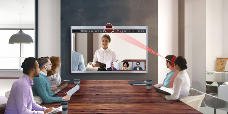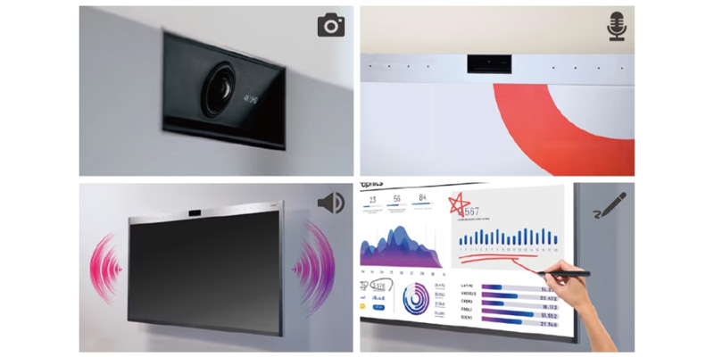 Camera và micro trên Màn hình cảm ứng 4K LG One Quick 55CT5WJ sẽ tự động định hướng theo người nói để có thể thu âm giọng nói và hình rõ ràng với khoảng cách lên đến sáu mét và camera có độ phân giải 3.840 x 2.160 tự động theo dõi và lấy nét vào người nói cụ thể.