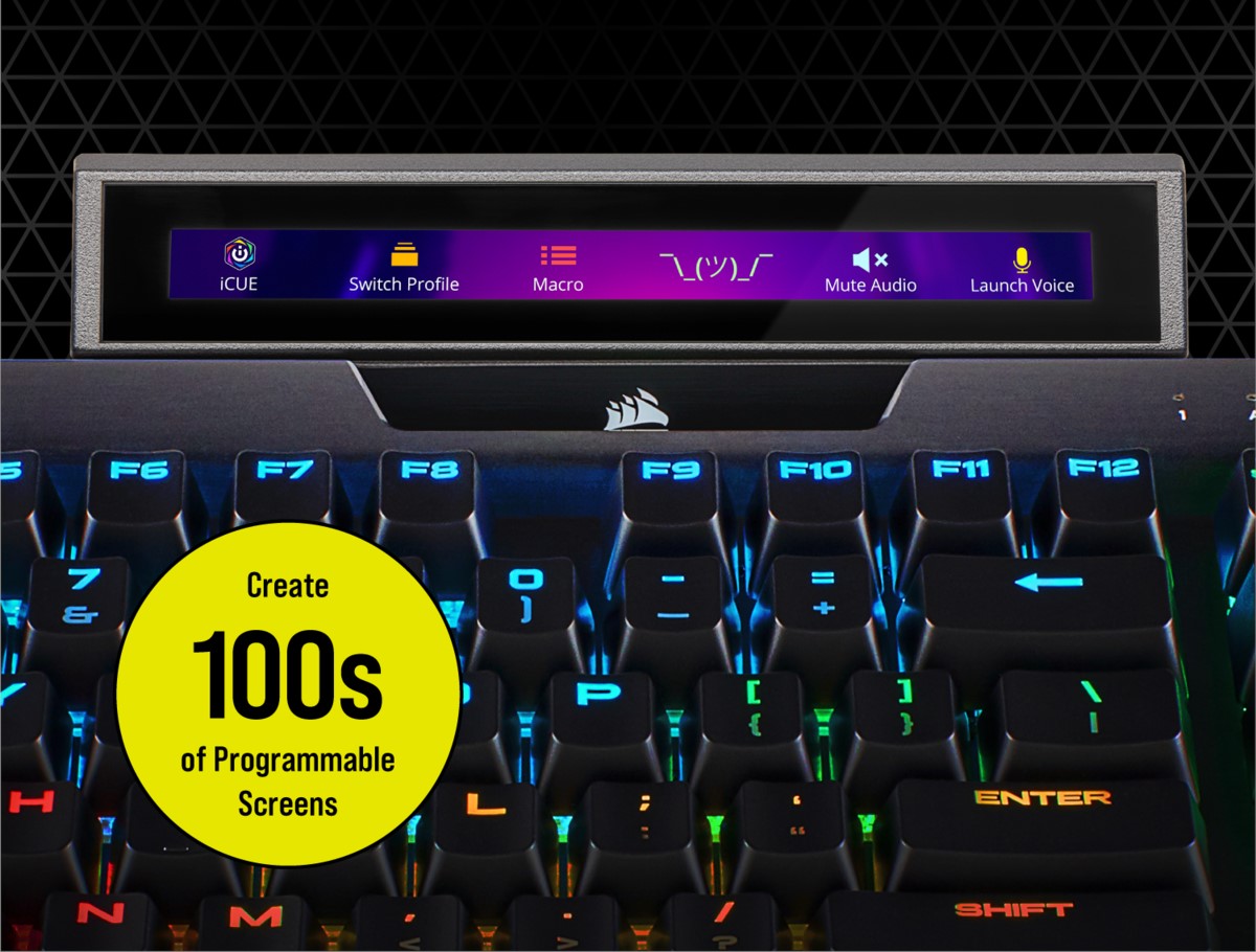Khả năng tùy biến Với khả năng lập trình hơn 100 chương trình, màn hình hiển thị tối đa sáu nút ảo bằng đồ họa kéo và thả tùy chỉnh, iCUE NEXUS tạo nên khả năng tùy biến cho bất kỳ thiết lập nào của người đam mê PC. |