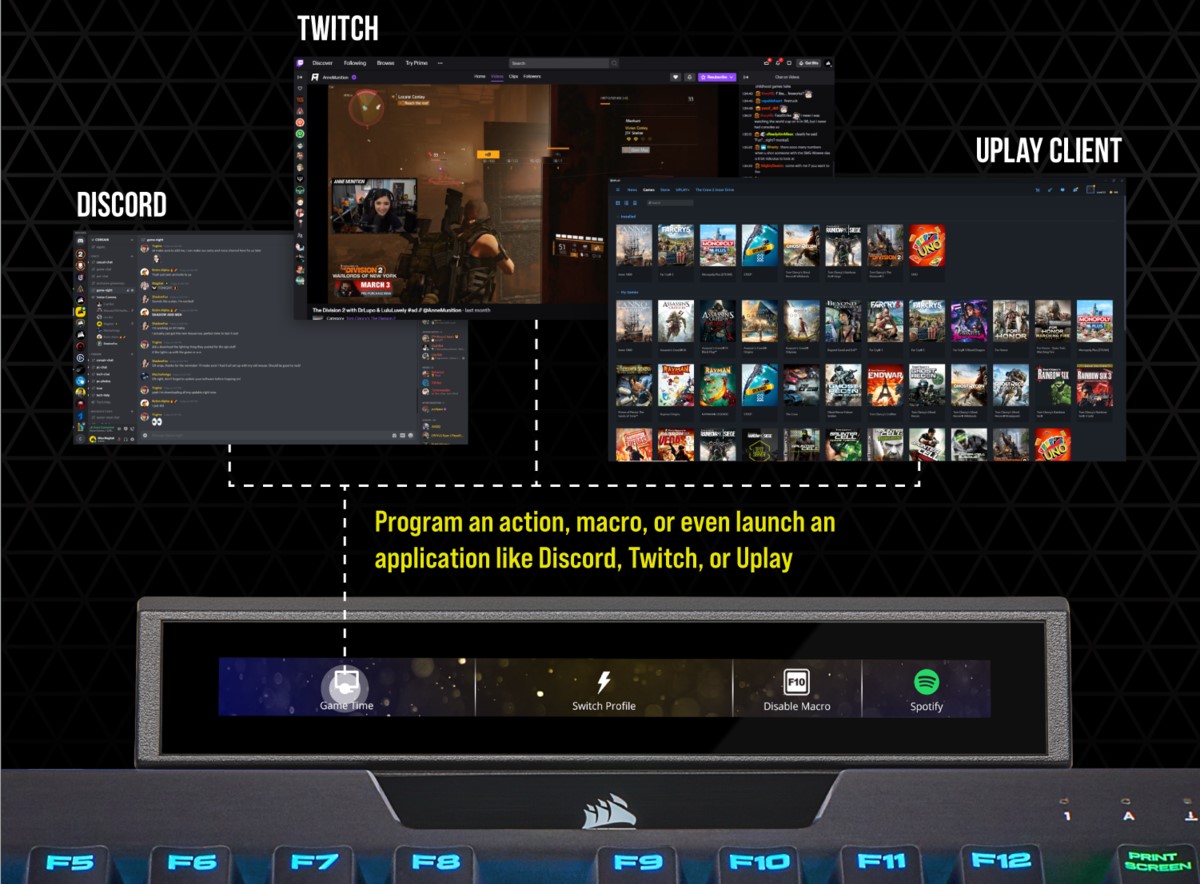 Màn hình cảm ứng Corsair iCUE NEXUS Chạm để ra lệnh Chỉ cần một cú chạm trong iCUE NEXUS, bạn có thể lập trình một hành động và marco cho các trò chơi hoặc ứng dụng yêu thích của mình trong phần mềm Corsair iCUE. |
