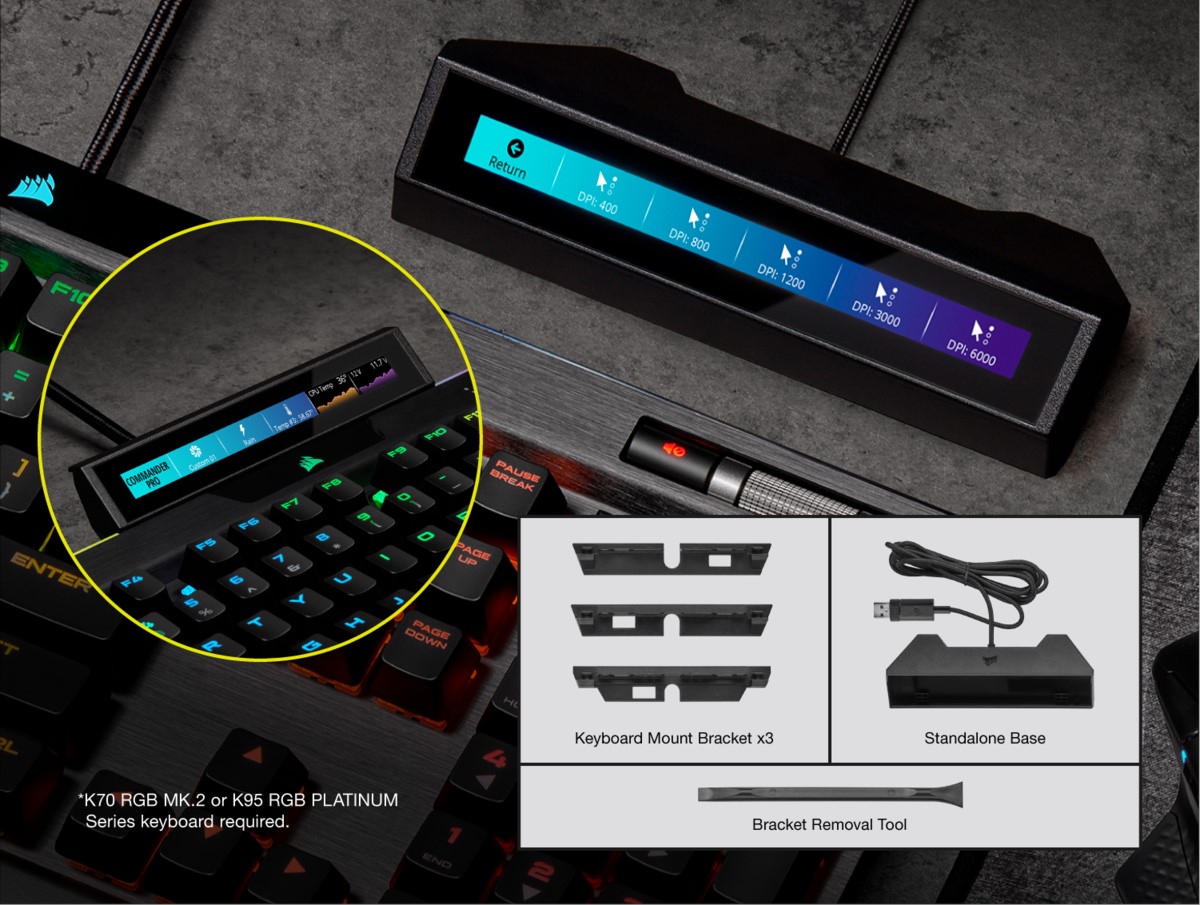 Kết nối đơn giản CORSAIR iCUE NEXUS là màn hình cảm ứng cho phép người dùng gắn vào các bàn phím tương thích như CORSAIR K70 RGB MK.2 hoặc K95 RGB PLATINUM XT hoặc kết nối trực tiếp với PC của bạn qua USB |