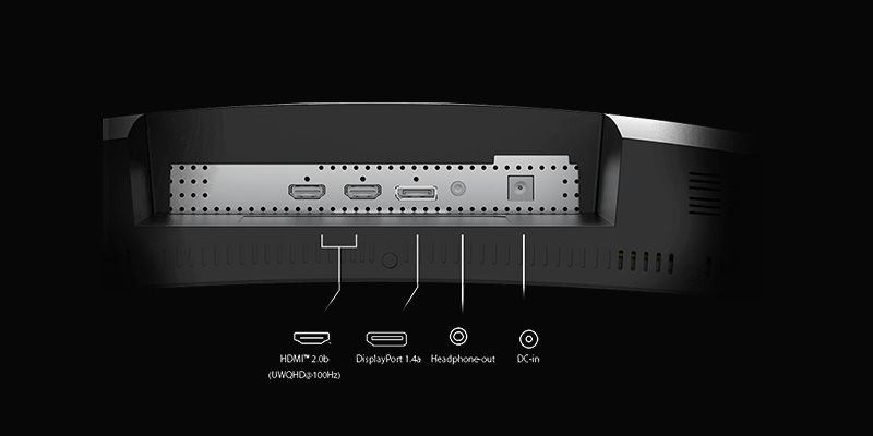 Trang bị 1 cổng DisplayPort 1.4a hỗ trợ 3440x1440@180Hz, 2 cổng HDMI 2.0b hỗ trợ 3440x1440@100Hz và jack 3.5mm, màn hình dễ dàng kết nối với PC, laptop, PS5 hoặc Xbox. Chân đế hỗ trợ xoay ±30°, nghiêng -5° ~ 20°, nâng hạ 90mm, và hỗ trợ VESA 75x75 giúp bạn dễ dàng treo tường, lắp đặt trong mọi không gian.