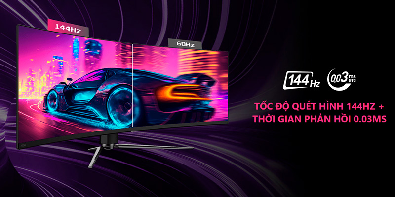 Hiệu suất vượt trội với tần số quét 144Hz và thời gian phản hồi 0.03ms