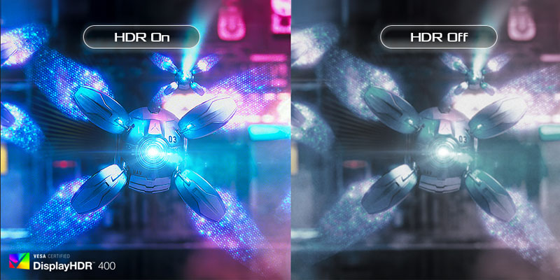 Công nghệ HDR hỗ trợ nhiều độ sáng khác nhau để mang lại dải màu rộng hơn và độ tương phản cao hơn so với màn hình truyền thống. Màu trắng sáng nhất và màu đen tối nhất làm nổi bật các chi tiết hơn bao giờ hết. Ngoài ra, nó có thể đạt độ sáng tối đa 400 nit để đáp ứng yêu cầu về chứng nhận DisplayHDR 400.
