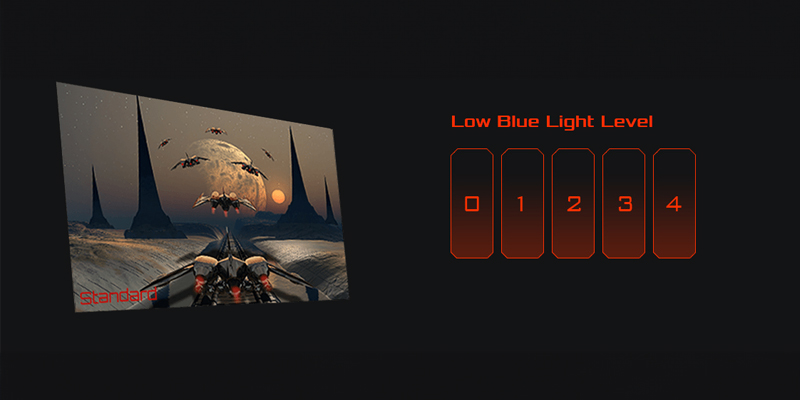 Công nghệ Ánh sáng xanh dương siêu thấp độc quyền của ASUS bảo vệ bạn khỏi bức xạ ánh sáng xanh dương mà có thể gây hại cho thị lực của bạn. Bộ lọc này cung cấp bốn thiết lập bộ lọc đèn xanh dương mà bạn có thể dễ dàng truy cập qua menu trên màn hình bằng cách sử dụng phím nóng