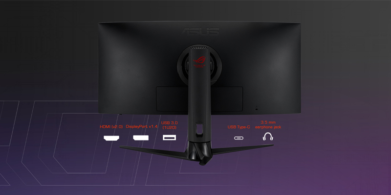 Màn hình cong ASUS ROG Strix XG349C trang bị khả năng kết nối phong phú với các cổng DisplayPort 1.4, HDMI (v2.0), USB hub và USB Type-C.