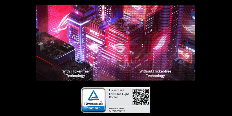 Công nghệ Khử nhấp nháy (Flicker-Free) của ASUS mang lại trải nghiệm xem và môi trường làm việc thoải mái hơn bằng cách giảm bớt hiện tượng nhấp nháy màn hình để giảm thiểu chứng căng mắt, nhức đầu và mỏi mắt khi bạn phải ngồi nhiều giờ trước màn hình.