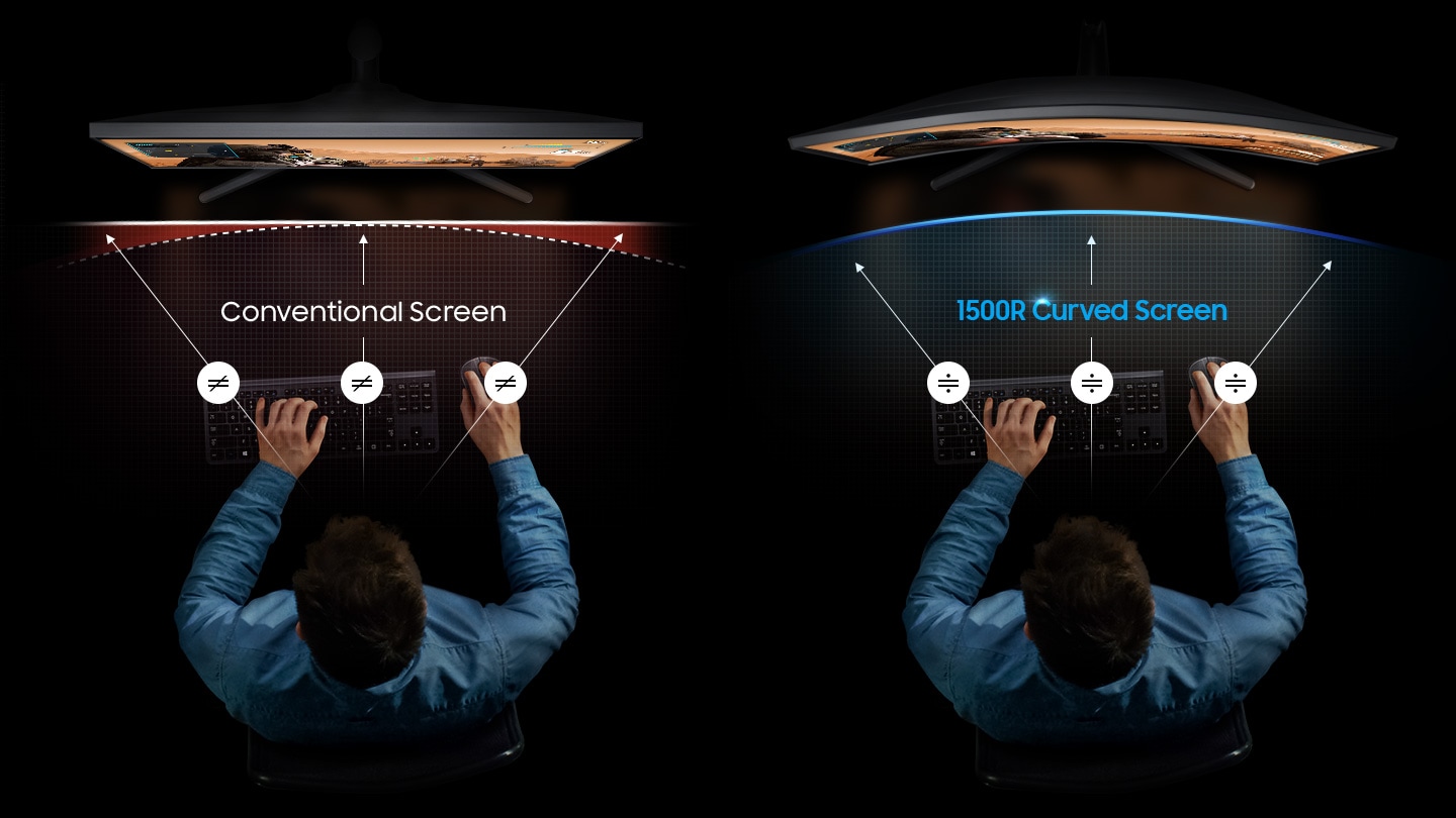 Màn hình cong hoàn hảo Đắm chìm trong những màn game kịch tính với màn hình cong 1500R tối ưu từ Samsung. Độ cong hoàn hảo tập trung hoàn toàn sự chú ý của bạn vào trong hình ảnh hiển thị, giảm mọi mắt và tạo cảm giác dễ chịu trong thời gian dài. Dẫn đầu mọi cuộc chơi với những chiến thắng vang dội nhất. |