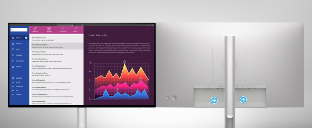 Thiết kế phù hợp với cách làm việc Quản lý dây cáp thông mình, tránh sự lộn xộn để tối giản góc làm việc của bạn. Màn hình không nhấp nháy với ComfortView Plus-one và giảm ánh sáng xanh, tạo sự thoải mái cho đôi mắt |