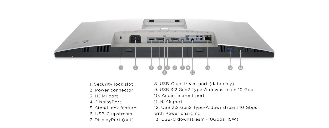 Kết nối hiệu quả Với cổng RJ45 và USB-C, Màn hình Dell 24 Inch U2422HE đóng vai trò như một nguồn cung cấp Ethernet và hỗ trợ sạc lên đến 90W |