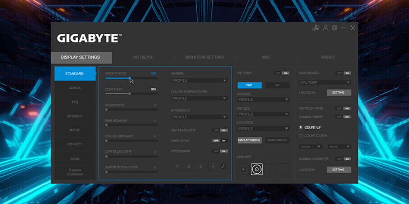 GIGABYTE OSD Sidekick cho phép bạn thiết lập các tùy chọn hiển thị bằng bàn phím và chuột, giúp bạn điều chỉnh cài đặt màn hình một cách dễ dàng nhất.