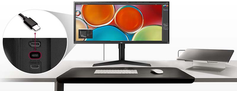 Kết nối dễ dàng qua cổng Type-C Màn hình LG UltraWide 34 Inch trang bị cổng USB Type-C™ hỗ trợ Chế độ DisplayPort. Chỉ cần sử dụng một cáp USB Type-C, toàn bộ tín hiệu hình ảnh DisplayPort có thể được truyền sang màn hình bên ngoài mà không cần bộ chuyển đổi nào. |