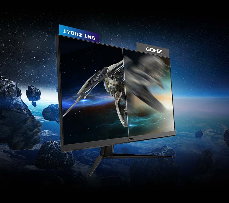 Tần số quét lên đến 170Hz Màn hình MSI G2712 thiết kế tần số quét 170Hz và thời gian phản hồi 1ms, mang lại lợi ích tối đa trong các thể loại game nhịp độ nhanh như FPS, RTS và MOBA. Những trò chơi yêu cầu chuyển động nhanh và chính xác, tần số quét cao và thời gian phản hồi nhanh sẽ đưa bạn vượt lên trước đối thủ. |