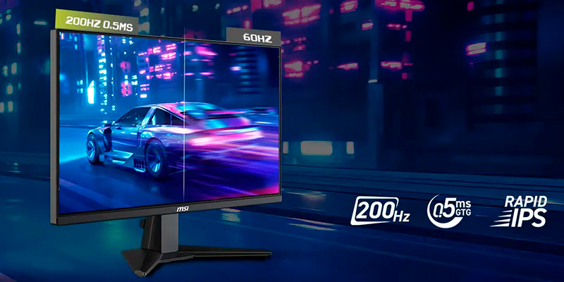 Màn hình MSI MAG 255F E20 IPS 24.5 inch FHD 200Hz HDR sở hữu tần số quét lên đến 200Hz và thời gian phản hồi 0.5ms, mang đến khả năng hiển thị cực kỳ mượt mà và chính xác, loại bỏ hiện tượng xé hình và nhòe chuyển động trong các tựa game hành động hoặc FPS. Công nghệ AMD FreeSync Premium hỗ trợ dải đồng bộ 48~200Hz, giúp khung hình ổn định, giảm tối đa hiện tượng giật hình khi chơi game tốc độ cao.