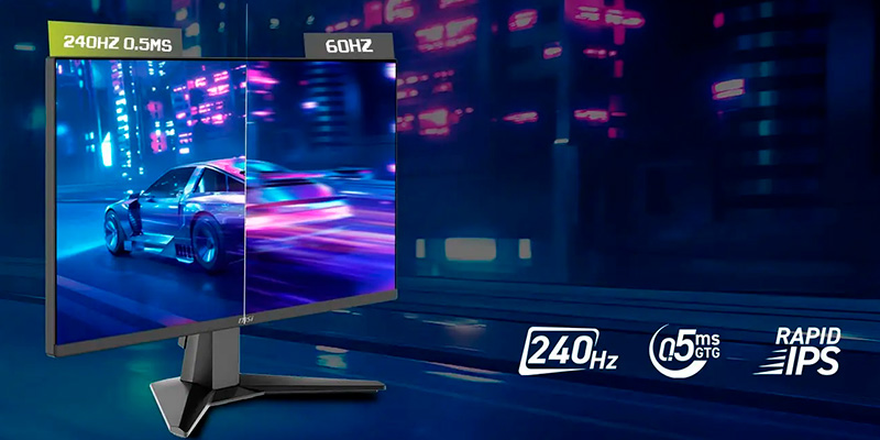Màn hình MSI MAG 272F X24 IPS 27 inch FHD 240Hz HDR được thiết kế tối ưu cho eSports với tần số quét 240Hz, mang đến khả năng hiển thị siêu mượt, loại bỏ hiện tượng giật hình và xé khung. Thời gian phản hồi 0.5ms (GtG) đảm bảo mọi chuyển động đều sắc nét và chính xác, giúp bạn phản ứng nhanh hơn trong các tựa game tốc độ cao như FPS, MOBA hay Battle Royale. Sự kết hợp giữa tốc độ và độ chính xác này tạo nên lợi thế cạnh tranh rõ rệt cho game thủ chuyên nghiệp.