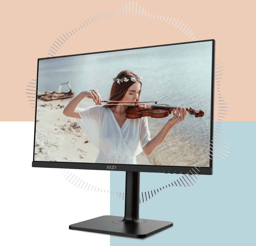 Loa tích hợp Màn hình MSI Modern MD241P với hai loa tích hợp cho phép người dùng nghe các tập tin âm thanh, tham gia các khóa học trực tuyến hoặc chỉnh sửa video bất cứ lúc nào mà không cần mang theo loa ngoài hoặc đeo tai nghe. |