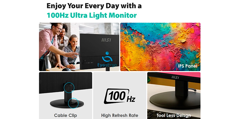 Sở hữu thiết kế viền mỏng ba cạnh, MSI PRO MP272LKL mang lại cảm giác thanh thoát, gọn gàng và hiện đại cho góc làm việc. Màn hình hỗ trợ góc nghiêng từ -3.5° đến 21.5° , giúp dễ dàng thiết lập đa màn hình hoặc gắn lên tay công thái học để tối ưu không gian. Đây là lựa chọn lý tưởng cho văn phòng làm việc hiện đại, trung tâm đào tạo hoặc không gian học tập tại nhà.