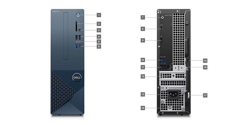 Máy bộ Dell Inspiron Small 3030S SFFI53013W1 được trang bị đầy đủ các cổng kết nối như USB Type-A, HDMI, cổng mạng LAN RJ45, cho phép bạn dễ dàng kết nối với các thiết bị ngoại vi, màn hình hoặc mạng internet. Các cổng kết nối này giúp đảm bảo khả năng mở rộng và đáp ứng mọi nhu cầu làm việc hoặc giải trí của bạn.