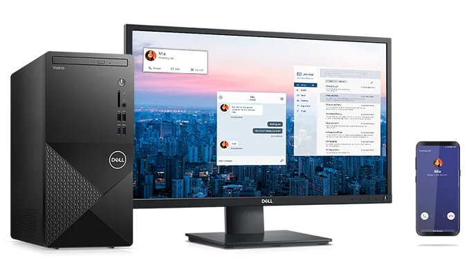 | Hợp nhất với thiết bị Mobile Hợp nhất với thiết bị di động của bạn qua ứng dụng Dell Mobile Connect. Bạn có thể dễ dàng làm việc như nhận cuộc gọi hay tin nhắn SMS trực tiếp từ Máy bộ Dell hay truyền tải các tệp tin từ điện thoại một cách dễ dàng hơn. |  |
