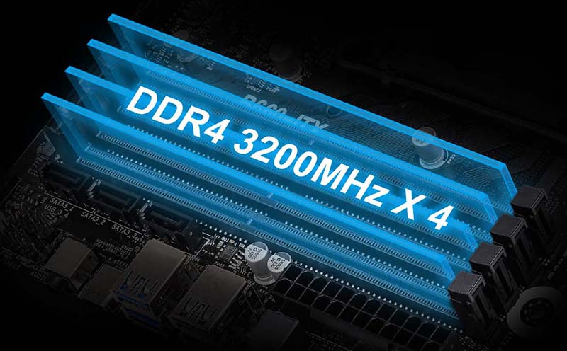 Hiệu suất bộ nhớ Asrock DeskMeet B660 hỗ trợ Ram DDR4-3200MHz lên tới 128GB giúp cung cấp hiệu suất tốt nhất để mọi trải nghiệm mượt mà hơn. |