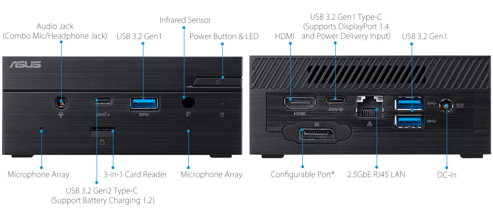 Kết nối tốc độ cao và hỗ trợ chế độ LEGACY ASUS Mini PC được trang bị nhiều cổng kết nối, bao gồm cổng USB 3.1 Gen1 Type-C phía trước, cổng USB 3.1 Gen1 Type-A với hỗ trợ Sạc pin chuẩn 1.2A và một cổng kết nối (tùy model) phía sau để hỗ trợ các thiết bị cũ hoặc màn hình. |