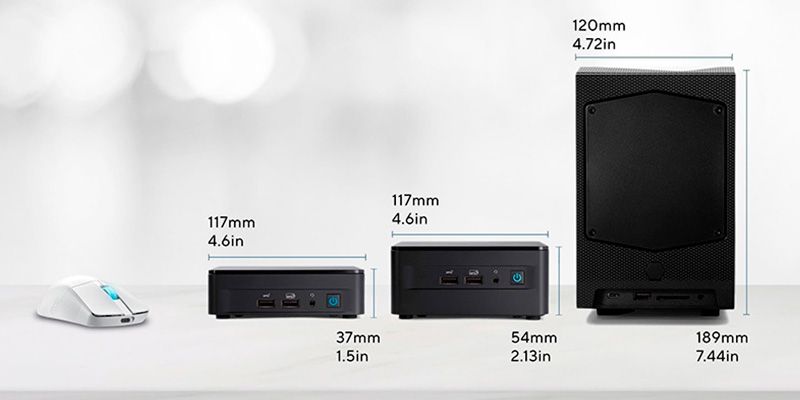 Máy tính Mini PC Asus NUC 12 Pro Wall Street Canyon i5-1240P RNUC12WSHI50000I nổi bật với thiết kế siêu nhỏ gọn nhưng vẫn đảm bảo sự chắc chắn và tính thẩm mỹ. Với kích thước vừa vặn, máy dễ dàng đặt trên bàn làm việc hoặc gắn vào mặt sau màn hình, tiết kiệm không gian một cách tối đa. Vỏ máy được thiết kế hiện đại, phù hợp với các không gian làm việc từ văn phòng đến tại nhà.