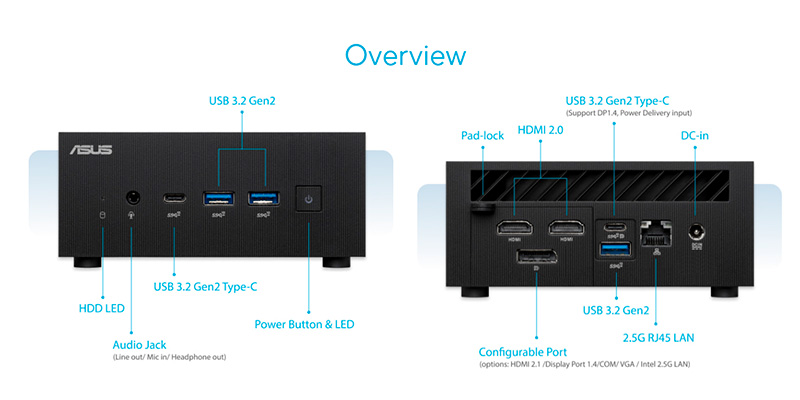 Mini PC ASUS hỗ trợ 2 khe DDR5 SO-DIMM, có thể nâng cấp tối đa 32GB RAM với phiên bản dùng CPU thế hệ 12. Ngoài ra, thiết bị còn hỗ trợ lưu trữ kép gồm 1 ổ SSD M.2 PCIe 4.0 x4 và 1 ổ cứng 2.5 inch SATA, cho phép bạn linh hoạt mở rộng dung lượng và tận dụng tốc độ đọc ghi nhanh cho công việc và lưu trữ cá nhân.