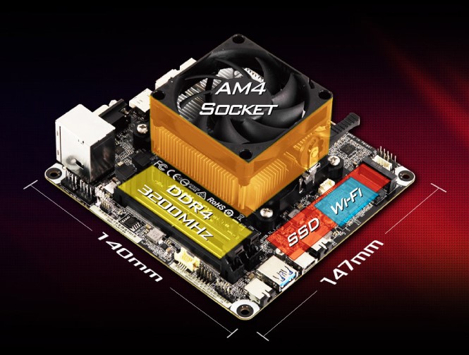 Dạng APU nhỏ Hỗ trợ CPU AMD AM4 Socket Renoir, Picasso, Raven Ridge lên đến 65W. Hỗ trợ bộ tản nhiệt CPU với chiều cao tối đa ≦ 46mm. |