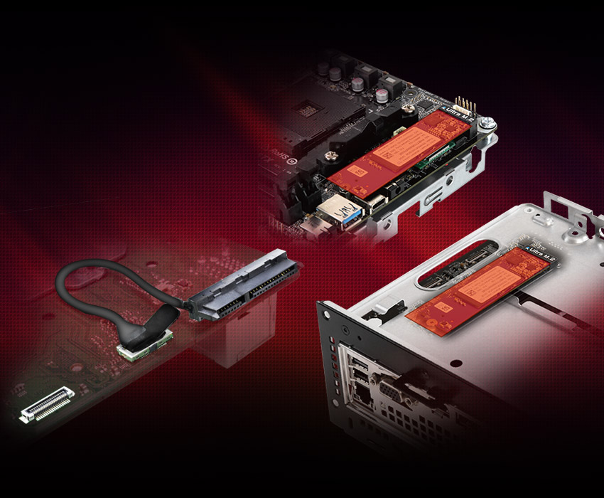 Kho lưu trữ đa dạng DeskMini X600 hỗ trợ tối đa tới 4 cổng lưu trữ gồm 1 cổng SSD M.2 PCIe Gen 5 x 4, 1 cổng SSD M.2 PCIe Gen4 x4 và 2 cổng ổ 2.5inch SATA SSD/ HDD. |