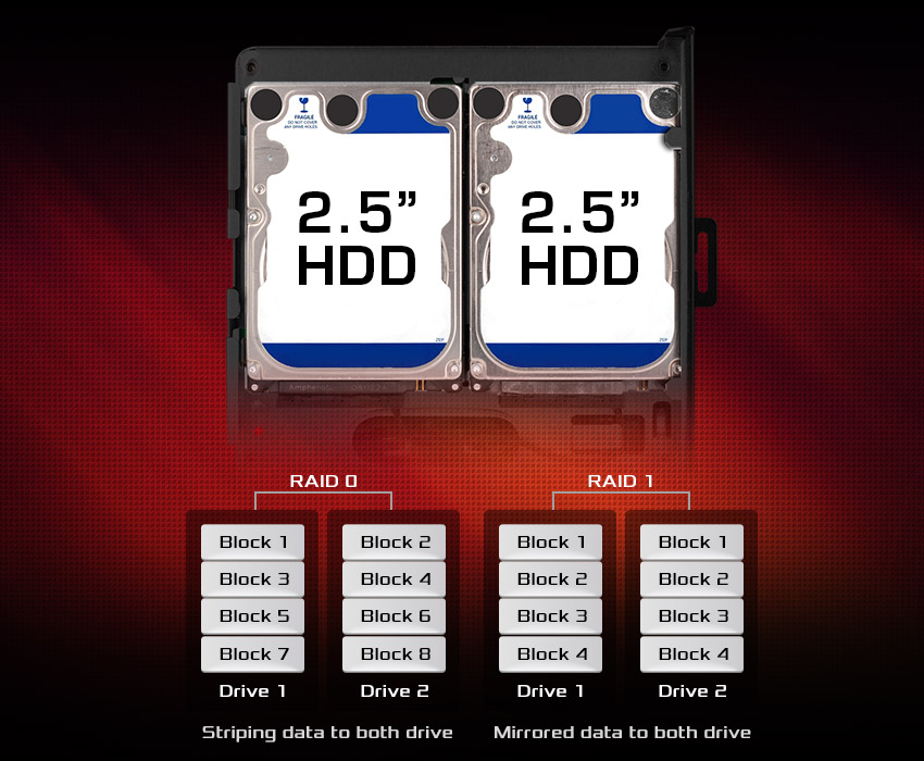 Trung tâm dữ liệu mini DeskMini hỗ trợ chức năng RAID 0/1 giúp bạn xây dựng một trung tâm dữ liệu tại nhà. Với RAID 0 để cung cấp hiệu suất I / O vượt trội và RAID 1 để bảo vệ các dữ liệu quan trọng trong dữ liệu được sao chép |