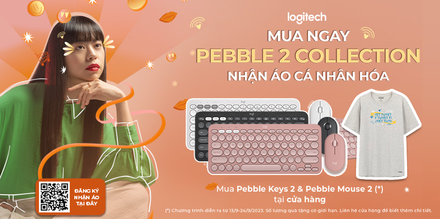 Pebble 2 Collection với bàn phím và chuột lifestyle mới nhất từ Logitech đã chính thức có mặt tại MemoryZone, cùng với đó là một chương trình độc đáo và không thể bỏ lỡ - "Mua Logitech Pebble 2 - Nhận Áo Thun Custom." Đây là cơ hội đặc biệt để bạn sở hữu chuột máy tính hay bàn phím vô cùng tiện lợi và thời trang, đồng thời thể hiện phong cách cá nhân thông qua một chiếc áo thun được thiết kế theo ý muốn của bạn.