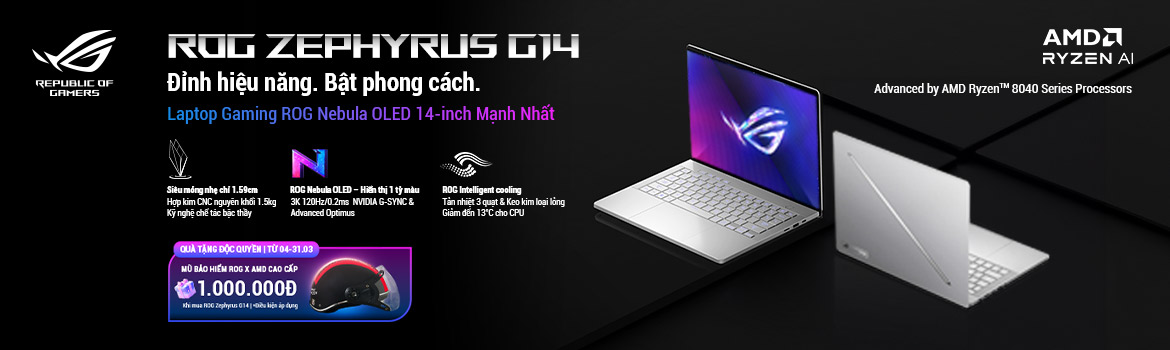 - Mua ROG Zephyrus G14 (2024) tặng 01 Nón bảo hiểm ROG trị giá 1.000.000 VND