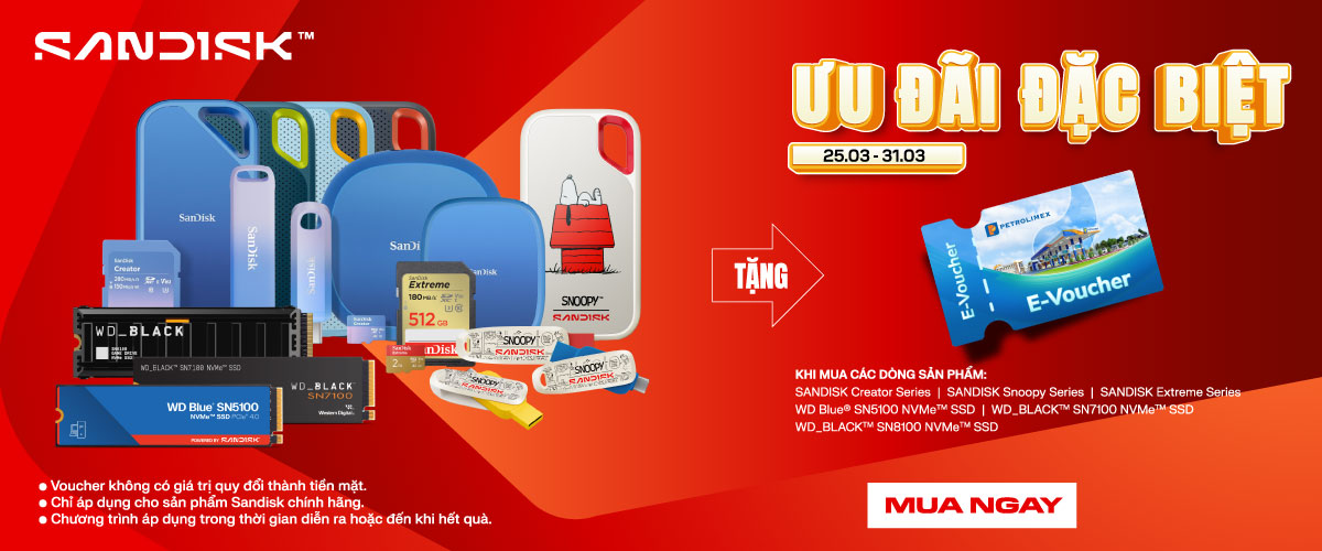 Nếu bạn đang có nhu cầu mua thẻ nhớ, USB hay SSD để nâng cấp lưu trữ, đây là thời điểm cực kỳ hợp lý để xuống tiền. Cuối tháng 3, MemoryZone gửi tới Quý khách ưu đãi cực hời, khi mua các sản phẩm Sandisk và WD chính hãng, bạn sẽ được tặng ngay voucher xăng Petrolimex để sử dụng thực tế mỗi ngày.