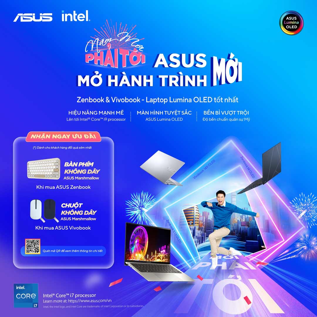 Để kết lại một năm 2023 đáng nhớ, ASUS cùng MemoryZone xin dành tặng bạn chương trình “Năm mới phải tới – ASUS mới, mở hành trình mới” cùng những ưu đãi đặc biệt khi mua dòng sản phẩm ASUS Zenbook & ASUS Vivobook. Đừng bỏ lỡ cơ hội tuyệt vời này để sắm cho mình 1 chiếc laptop ASUS - người bạn đồng hành đắc lực cho một năm mới thăng hạng và đầy bứt phá.