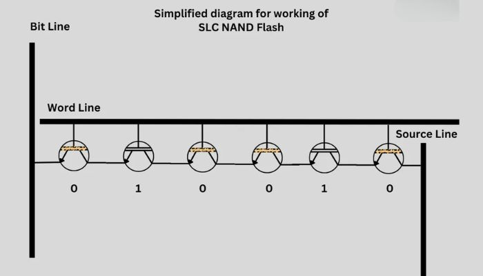 SLC (Single-Level Cell) là loại NAND chỉ lưu trữ 1 bit dữ liệu trên mỗi ô nhớ, tương ứng với hai trạng thái đơn giản: 0 hoặc 1. Kiến trúc đơn giản này mang lại nhiều ưu điểm vượt trội về hiệu năng và độ tin cậy.
