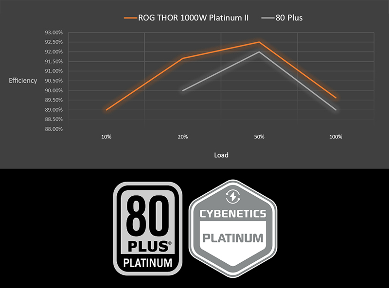 Nguồn máy tính ASUS ROG THOR 1000P2 GAMING 1000W PLATINUM Chứng nhận 80 Plus Platinum Nguồn máy tính ASUS ROG THOR 1000P2 GAMING đạt chứng nhận hiệu suất được 80 Plus Platinum và thiết kế quạt thông minh cho phép giảm thiểu hoặc không phát hiện ra tiếng ồn của quạt trong quá trình hoạt động thường xuyên. |