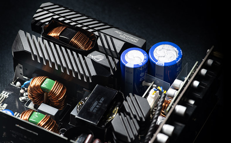 Tản nhiệt ROG Nguồn máy tính ASUS ROG THOR 1200P2 GAMING được tích hợp tản nhiệt ROG lớn gấp 2 lần so với các mẫu truyền thống, giúp giảm nhiệt độ lên đến 20%. |