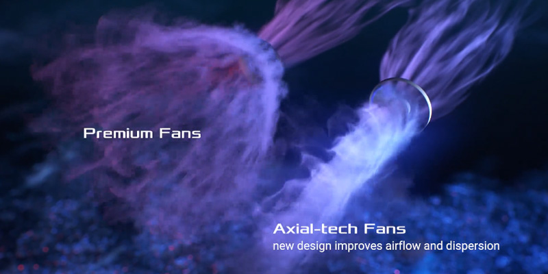 Nguồn máy tính ASUS TUF Gaming 1000W 80 Plus Gold trang bị quạt công nghệ Axial có ổ trục quạt nhỏ hơn tạo điều kiện cho các cánh quạt dài hơn kết hợp cùng vòng nối cánh quạt giúp tăng áp suất không khí đi xuống. Nguồn máy tính Asus TUF Gaming 1000W 80 Plus Gold có fan được thiết kế nhỏ hơn chỉ với 135mm giúp tản nhiệt hiệu quả ở RPMs thấp mà vẫn cho tiếng ồn thấp.
