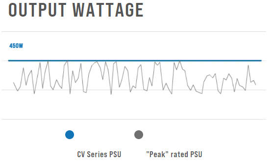 Đầu ra ổn định Giống như tất cả các bộ nguồn CORSAIR, CV Series thực hiện đúng những gì nó nói: cung cấp nguồn điện liên tục ở mức công suất tối đa, bất kể bạn chọn biến thể công suất nào. |