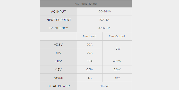 | Công suất | 450W |