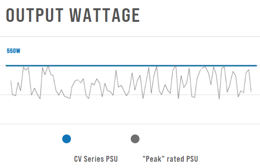 Đầu ra ổn định Giống như tất cả các bộ nguồn CORSAIR, CV Series thực hiện đúng những gì nó nói: cung cấp nguồn điện liên tục ở mức công suất tối đa, bất kể bạn chọn biến thể công suất nào. |