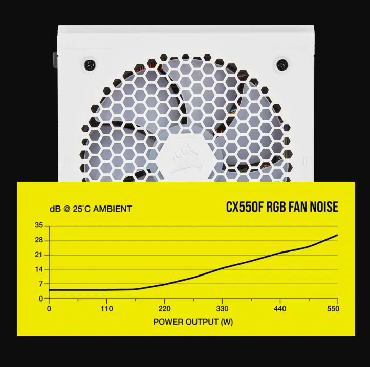 Tối ưu hóa tiếng ồn CX-F có quạt RGB được tinh chỉnh với đường cong quạt chuyên dụng để giảm độ ồn. |