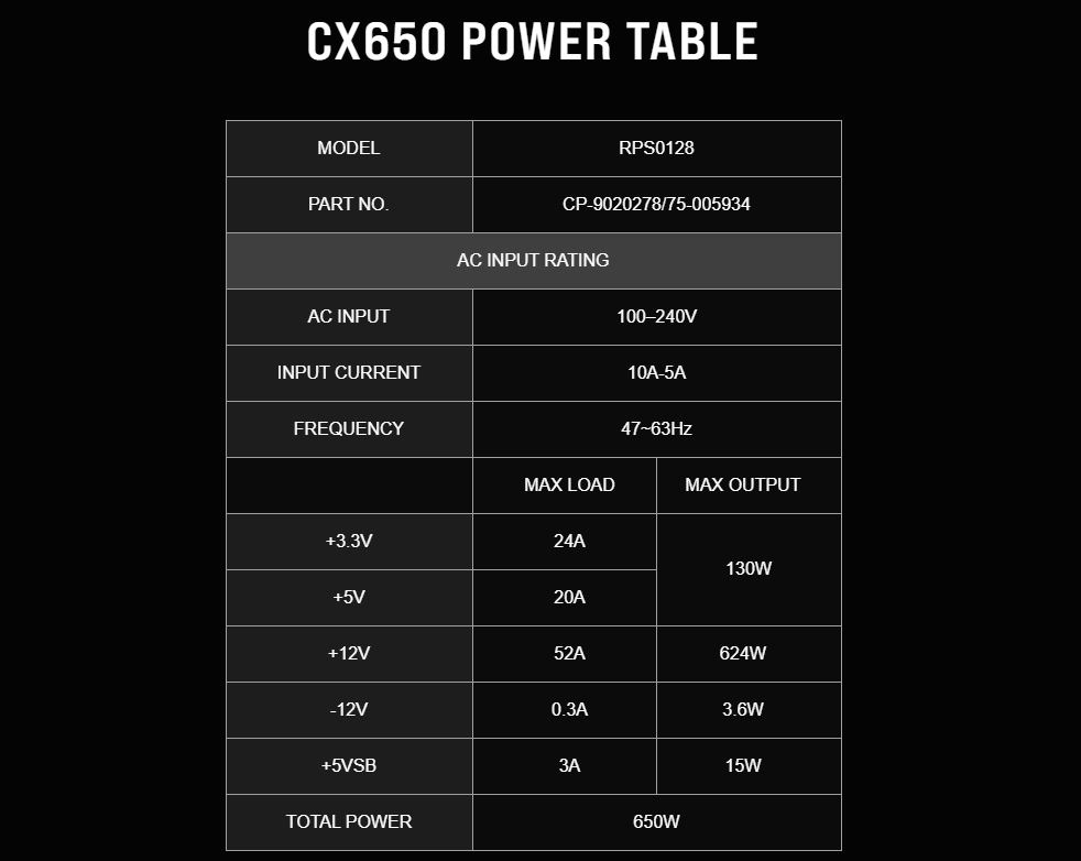 Nguồn máy tính Corsair CX650 650W