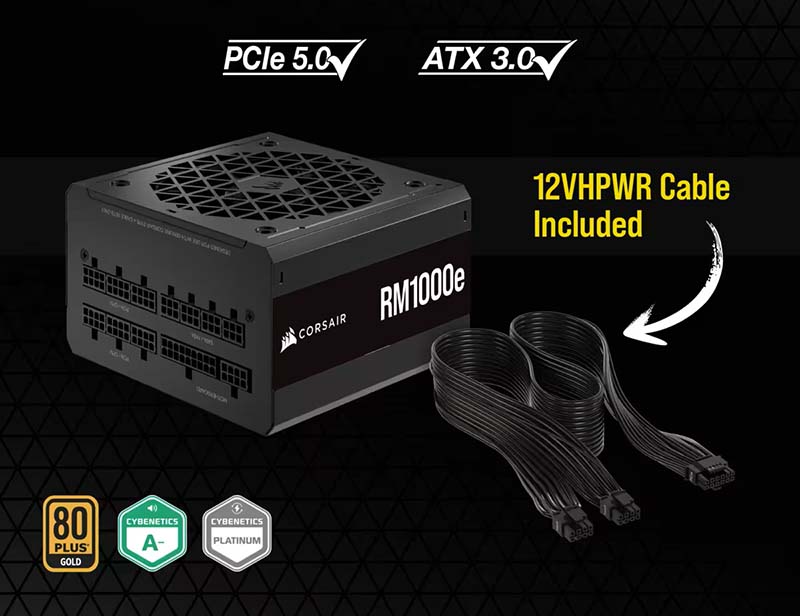 Đạt chứng nhận ATX 3.0 Nguồn máy tính Corsair RM1000e PCIE5 1000W 80 Plus Gold được trang bị đầu nối 16 PIN để tương thích PCIe 5.0 và ATX 3.0. Nhờ có ATX 3.0, bộ nguồn cũng có thể nâng mức cung cấp tiêu thụ năng lượng lên gấp 2 lần và gấp 3 lần mức tiêu thụ năng lượng GPU. |