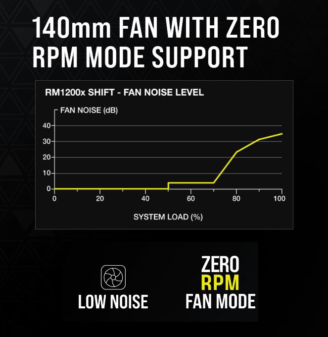 Chế độ Zero-RPM Quạt làm mát của RMx Series không quay cho đến khi bạn cần, để hoạt động gần như im lặng ở mức tải thấp và trung bình. |