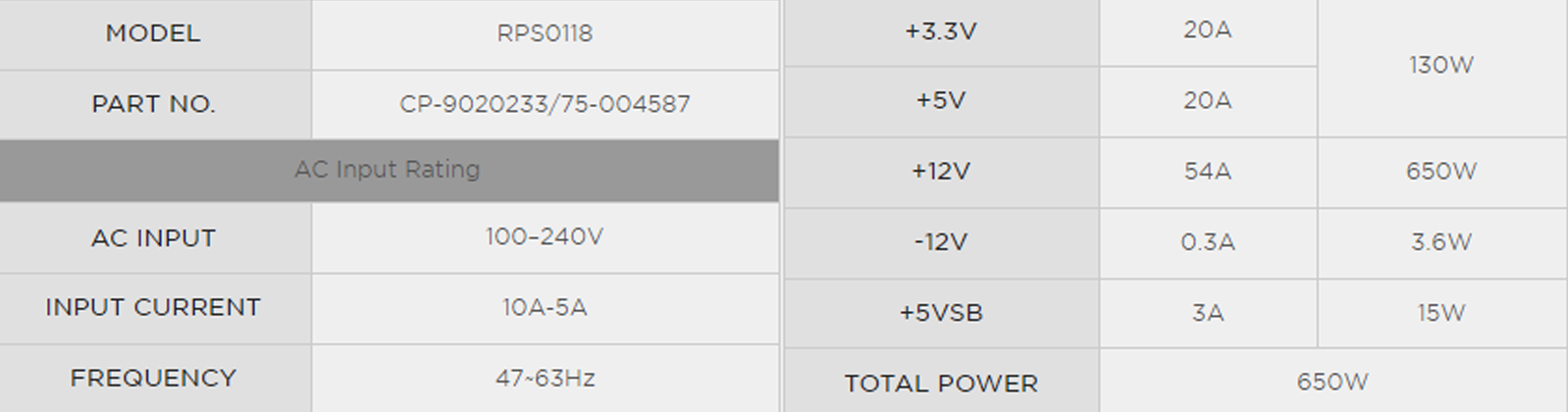 | Công suất | 650W |