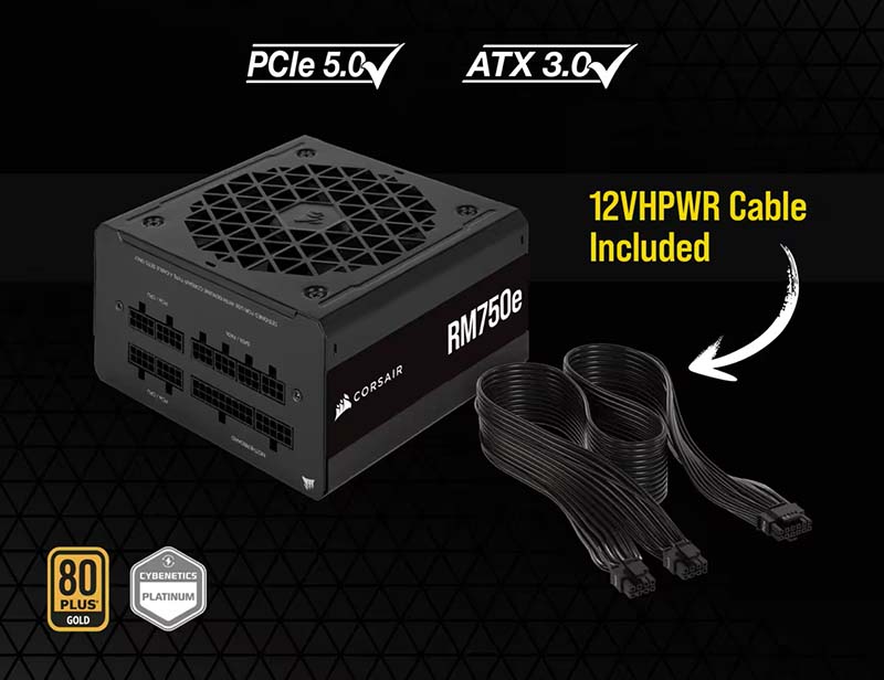 Đạt chứng nhận ATX 3.0 Nguồn máy tính Corsair RM750e PCIE5 750W 80 Plus Gold được trang bị đầu nối 16 PIN để tương thích PCIe 5.0 và ATX 3.0. Nhờ có ATX 3.0, bộ nguồn cũng có thể nâng mức cung cấp tiêu thụ năng lượng lên gấp 2 lần và gấp 3 lần mức tiêu thụ năng lượng GPU. |