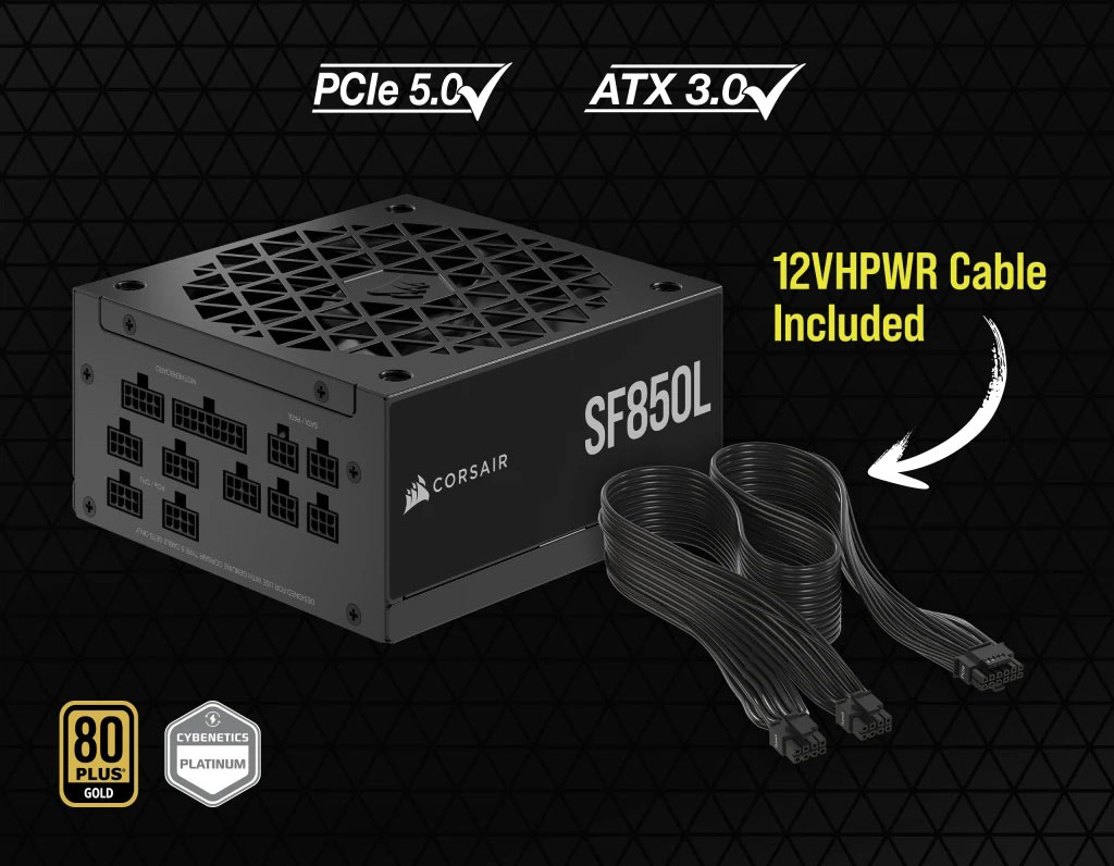 Đạt chứng nhận ATX 3.0 Nguồn máy tính Corsair SF850L 850W 80 Plus Gold được trang bị đầu nối 16 PIN để tương thích PCIe 5.0 và ATX 3.0. Nhờ có ATX 3.0, bộ nguồn cũng có thể nâng mức cung cấp tiêu thụ năng lượng lên gấp 2 lần và gấp 3 lần mức tiêu thụ năng lượng GPU. |