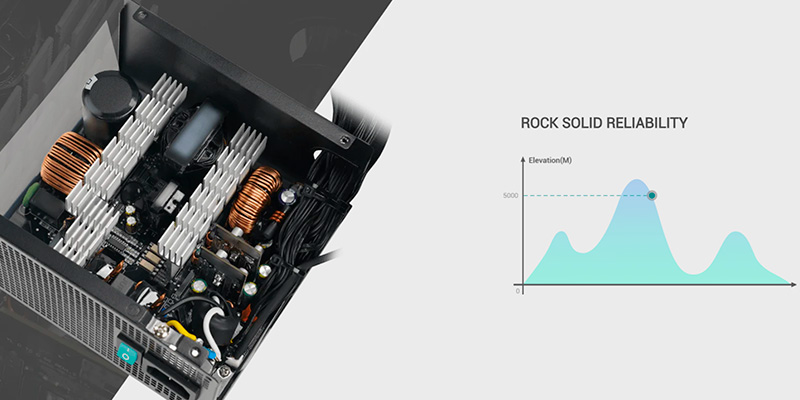 Nguồn sử dụng tụ điện điện giải cao cấp, đảm bảo khả năng giữ điện ≥ 16ms dưới toàn tải, tránh hiện tượng tắt đột ngột trong chớp mắt do sụt áp. Thiết kế mạch dual-transistor forward, kết hợp active PFC và DC-DC nâng cao độ ổn định điện áp, đồng thời cho phép hoạt động tốt ngay cả ở độ cao đến 5.000m.